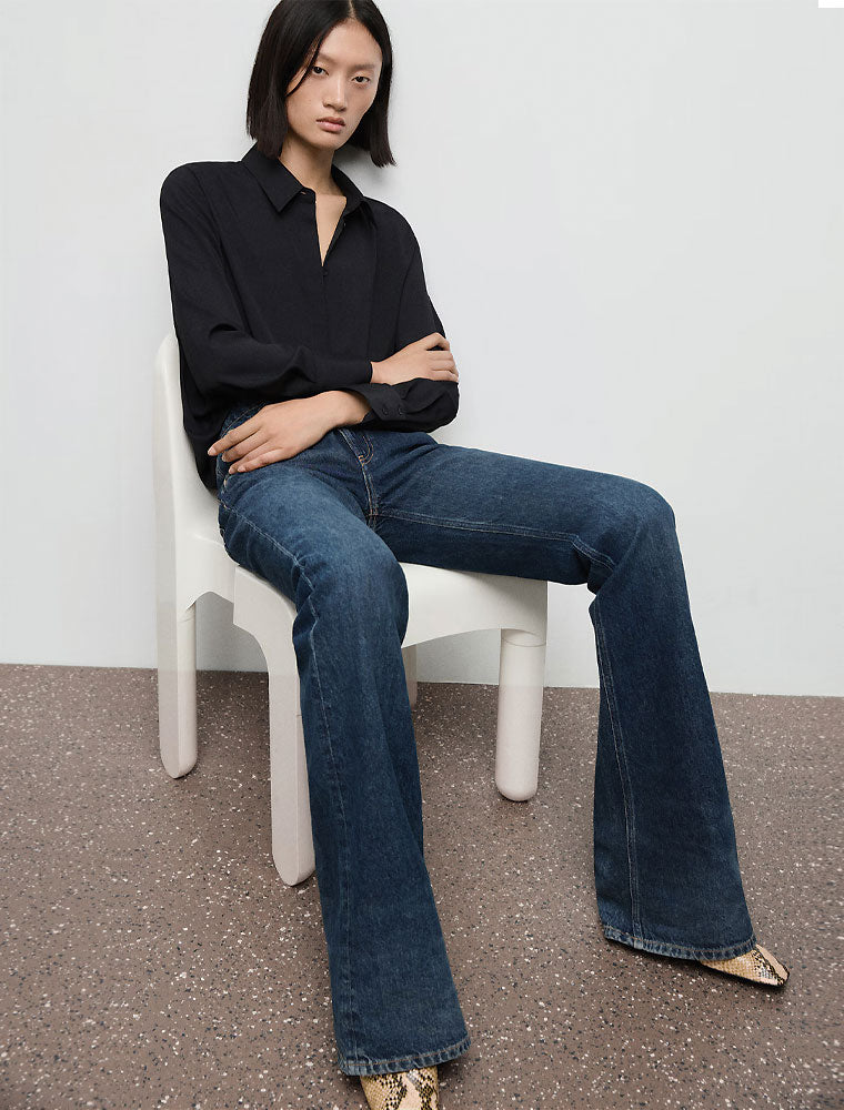 The classic button-down silhouette features a pointed collar, relaxed fit, and subtle sheen for an effortlessly chic statement. Wear it tucked into tailored trousers for a refined office look or layer it over a cami for elegant weekend vibes.