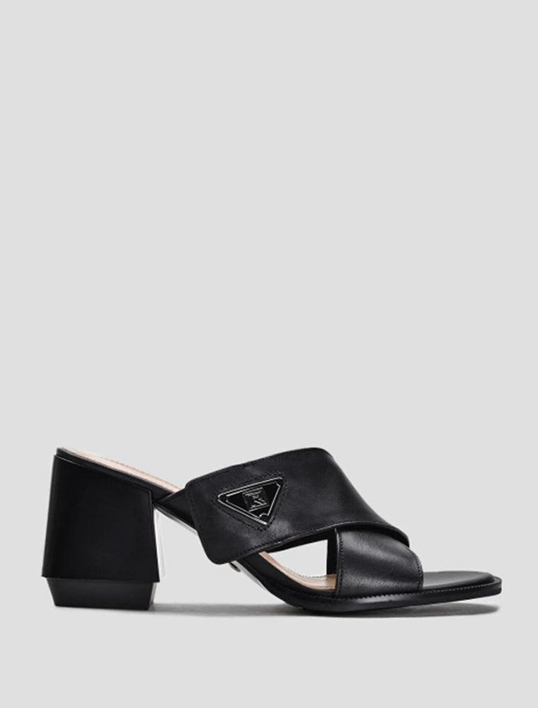 Criss-Cross Open Toe Mules, Black