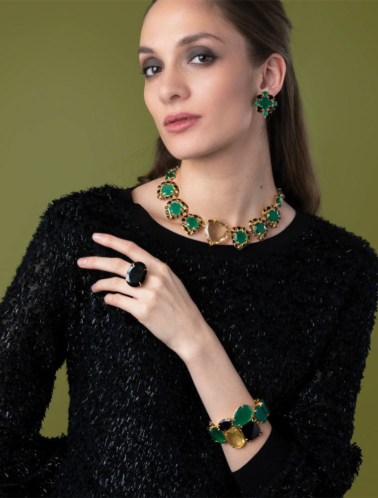 Faye Ring, Checkers Cut Black Onyx, 14K Gold Plated