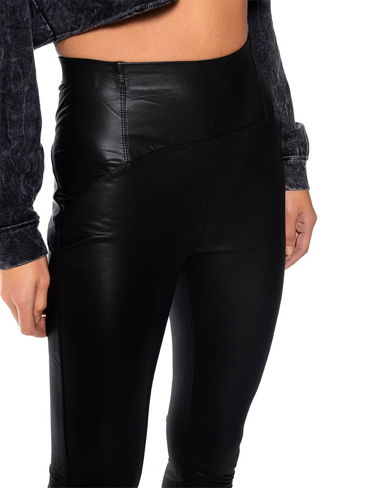 Everything you could ever need and more, the Fleece Lined Faux Leather Legging with 4 way stretch are the perfect faux leather leggings to get you through fall and winter. These stretchy leggings are complete with an elasticated waistband, a high rise fit, buttery soft faux leather fabrication, and a bodycon ankle length silhouette. Style them with a slouchy sweater and thigh high boots for a stylish wintery look.