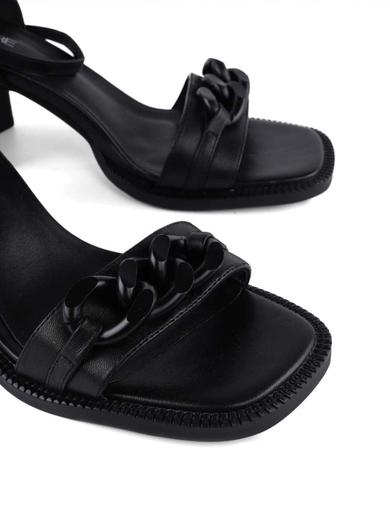 Front Chunky Chain Detail Ankle Strap Sandals, Black