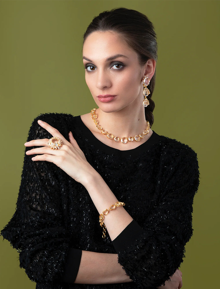 Monica Bracelet, Multi Shapes of Clear Quartz, Rhodium Plated
