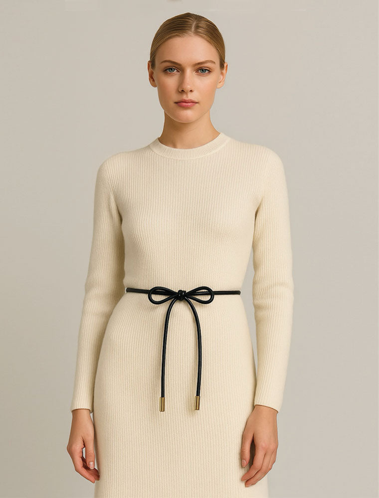 Sleek and versatile, this circular black leather belt features hand-braided stitching and polished gold-tone tips. Wrap it, knot it, or loop it — designed to elevate any look with modern edge and timeless craftsmanship.