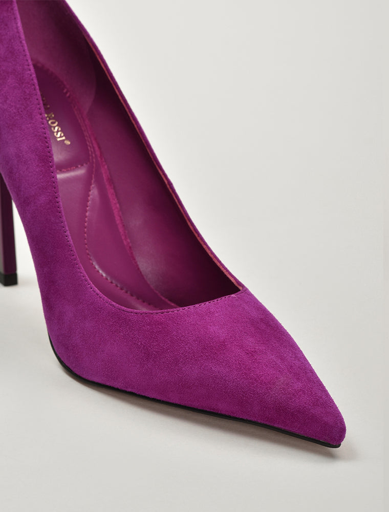Pointed Suede Stiletto Heel Pumps, Fuchsia