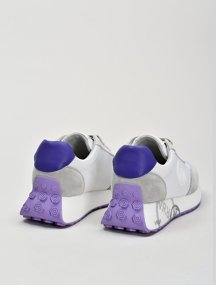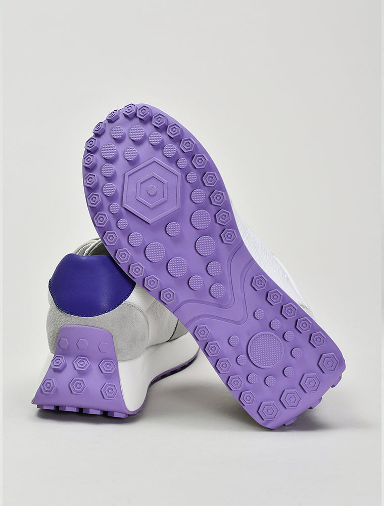 Elevate your sneaker game with these stylish Suede Sneakers, featuring a modern mix of white mesh, grey suede overlays, and a bold purple sole. Designed for both comfort and style, these sneakers offer a sporty yet refined aesthetic, perfect for everyday wear.