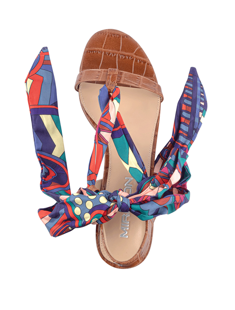 These tie-on embossed croc flat sandals with multicolor ankle tie provide you and your outfit with a fun pop of pattern and color!