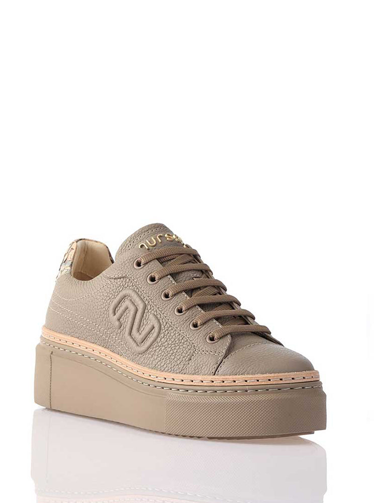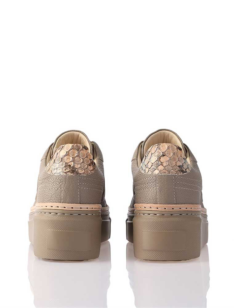 Women's Genuine Leather Sneaker with Python Detail, Taupe